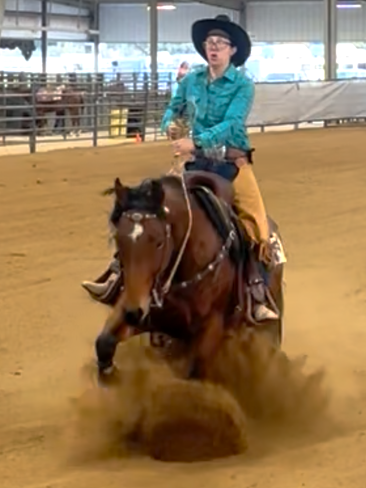 Has done great in local ranch versatility shows – 2023 Western Slope Ranch Versatility Challenge Champion (high point across 7 shows), 2025 Spring Gather Non-Pro Champion, 2025 Grand Junction Horse Show Association COWN Non-Pro Boxing Champion, 2025 Limited Non-Pro Heritage of the Horse Champion, and consistently scores 70.5-72 in boxing classes.