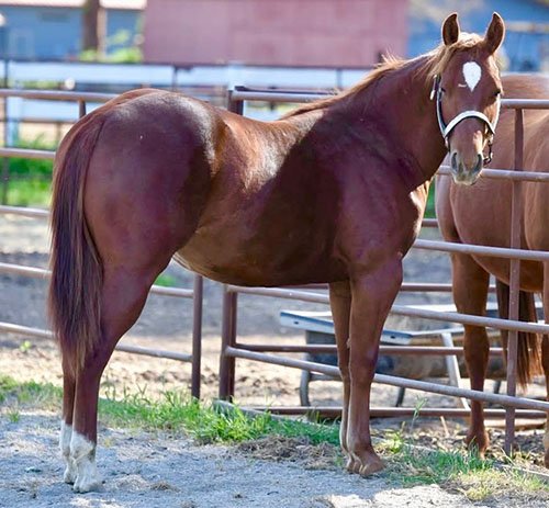 | Main Attraction 2025 AQHA chestnut gelding | Huggs Olena | ||
