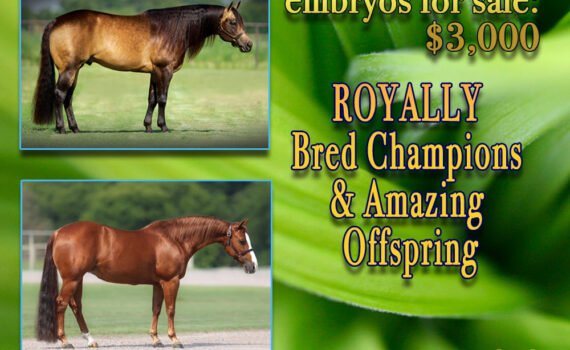 frozen embryos – $3,000 ROYALLY Bred Champions & Amazing Offspring Sire: Whizkey N Diamonds by Topsail Whiz ($224,020: siring earners of $3,607,039) Dam Dressed in […]